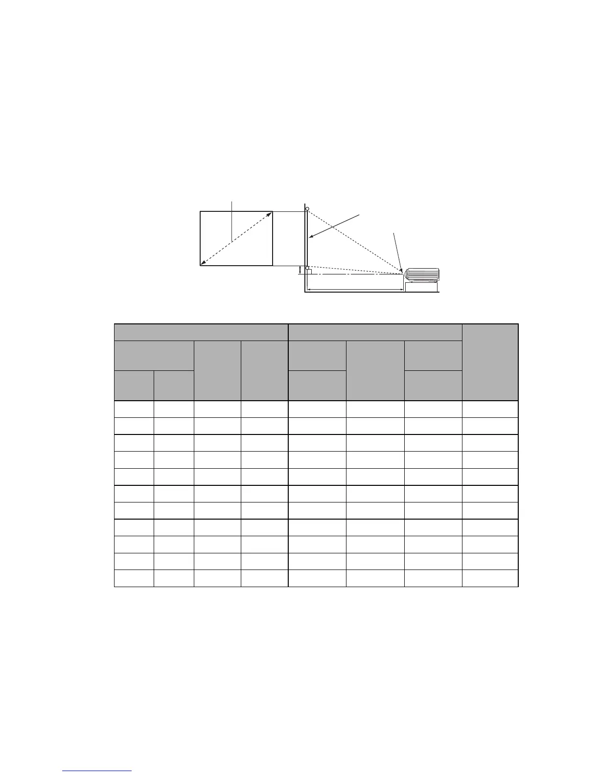 For example, if you are using an 120-inch screen, the recommended projection distance is