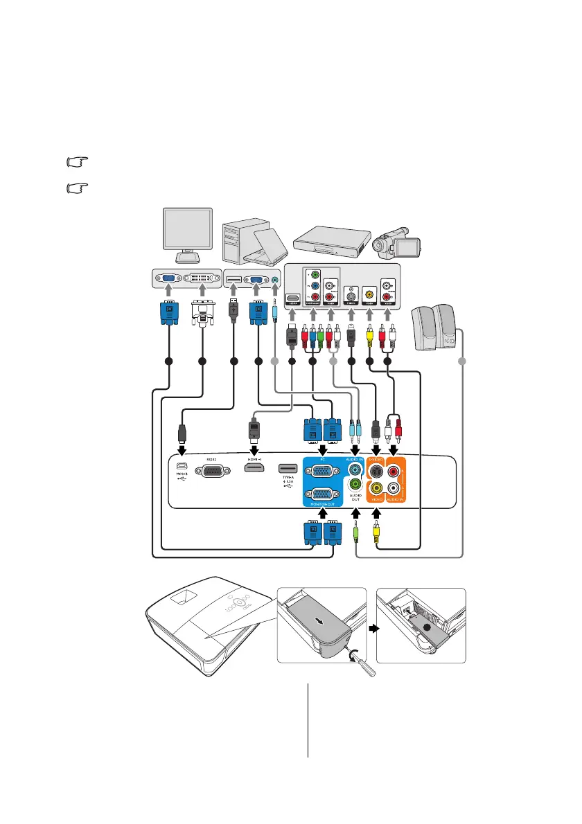 The connection illustrations below are for reference only. The rear connecting jacks available on the projector