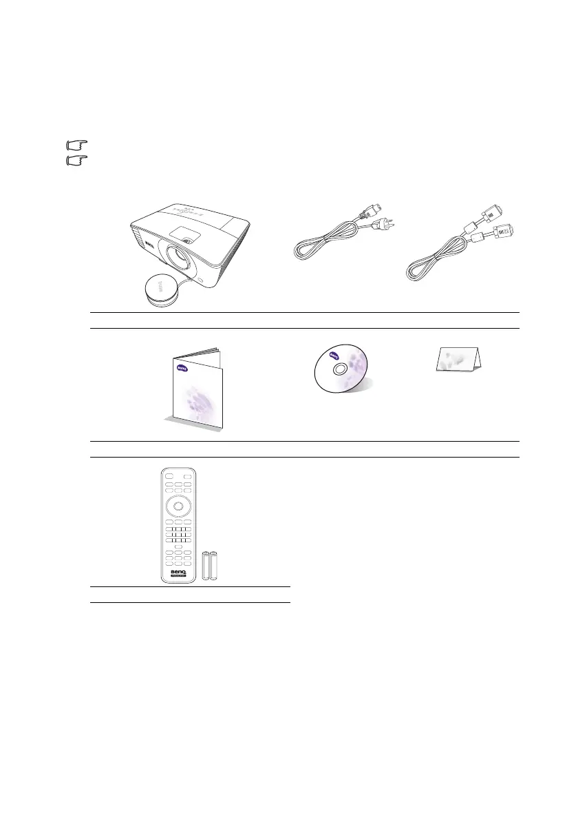 Carefully unpack and verify that you have all of the items shown below. If any of these items