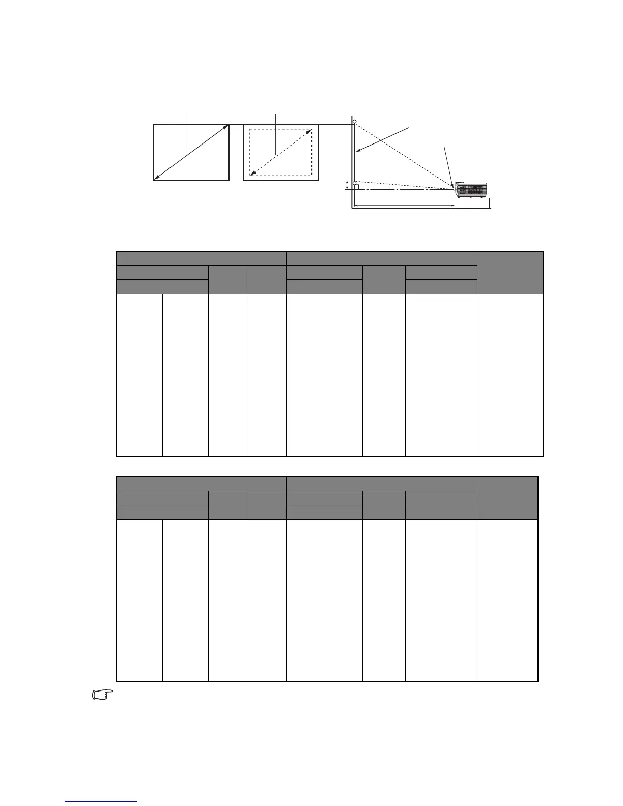 Refer to "Dimensions" on page 68 for the center of lens dimensions of this projector