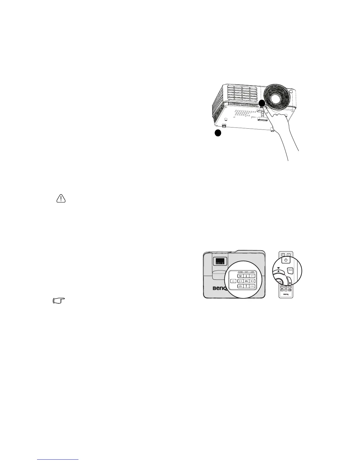 • Do not look into the lens while the lamp is on. The strong light from the lamp may cause
