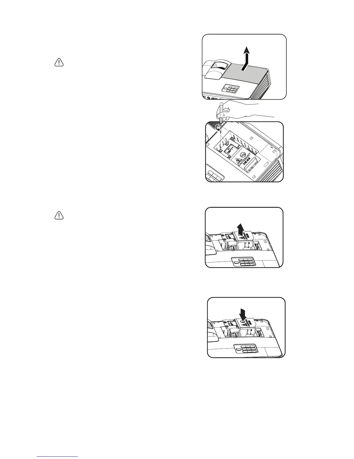 • Do not insert your hands into the projector