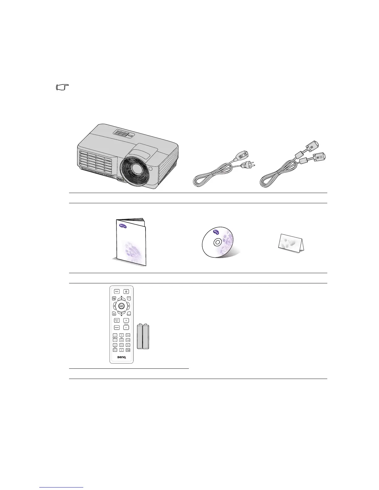 Carefully unpack and verify that you have all of the items shown below. If any of these items