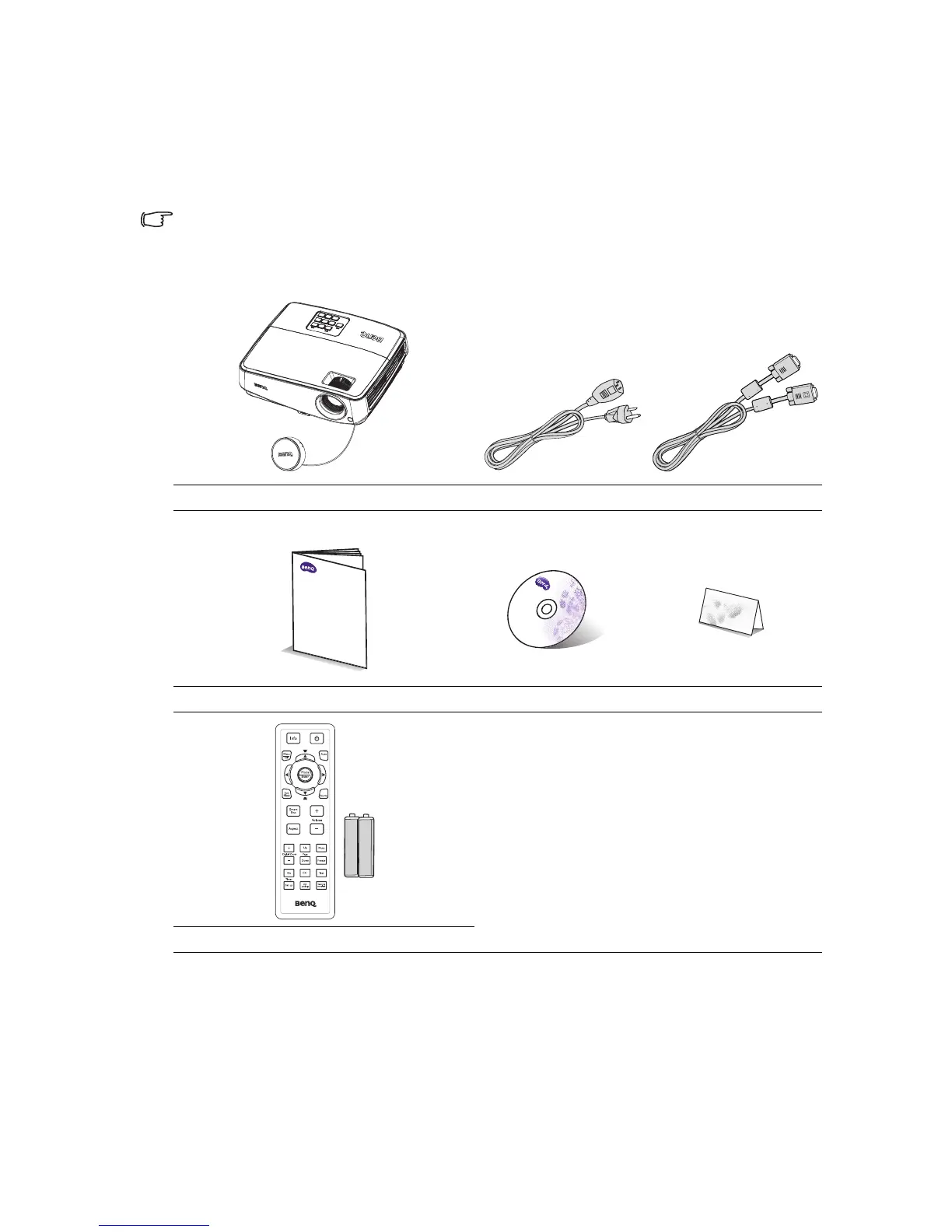 Carefully unpack and verify that you have all of the items shown below. If any of these items