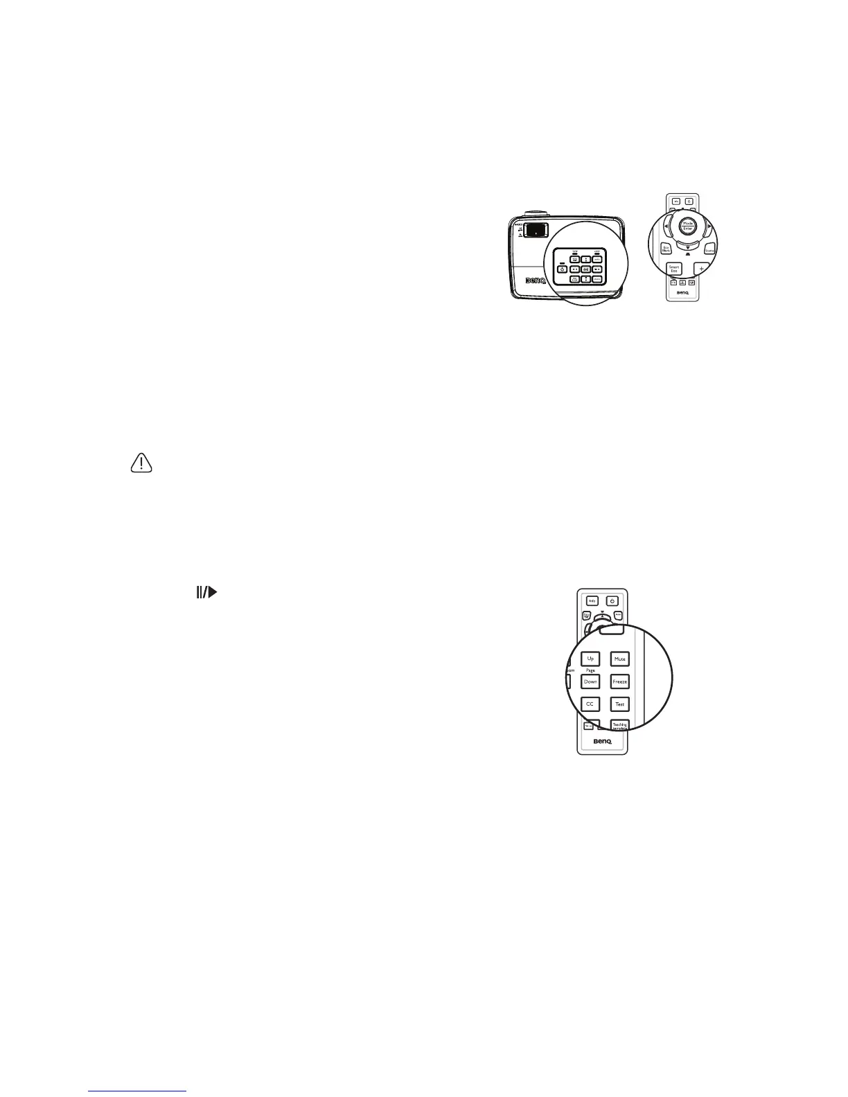 key) on the projector or remote control to restore the picture.