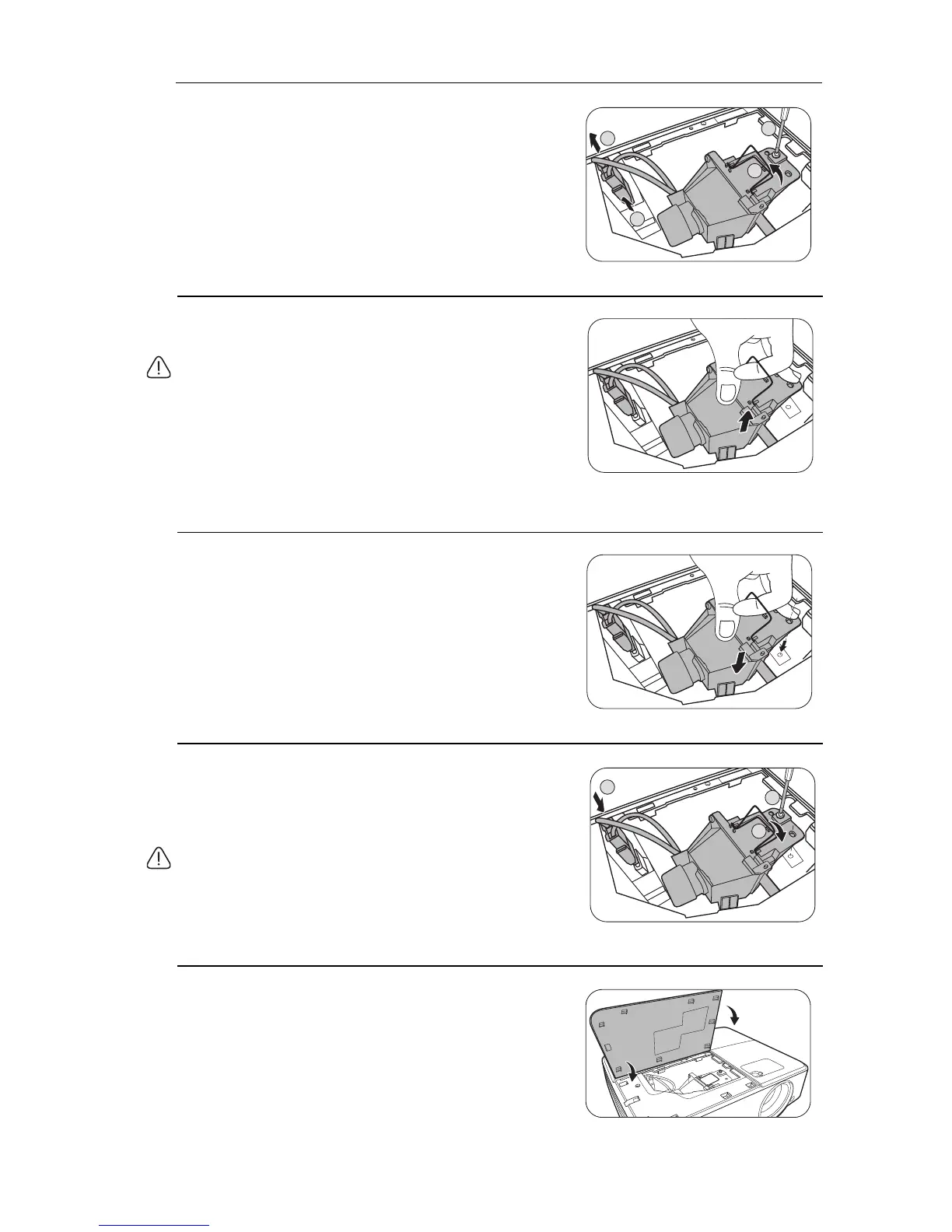 • Do not insert your hands into the projector after the lamp