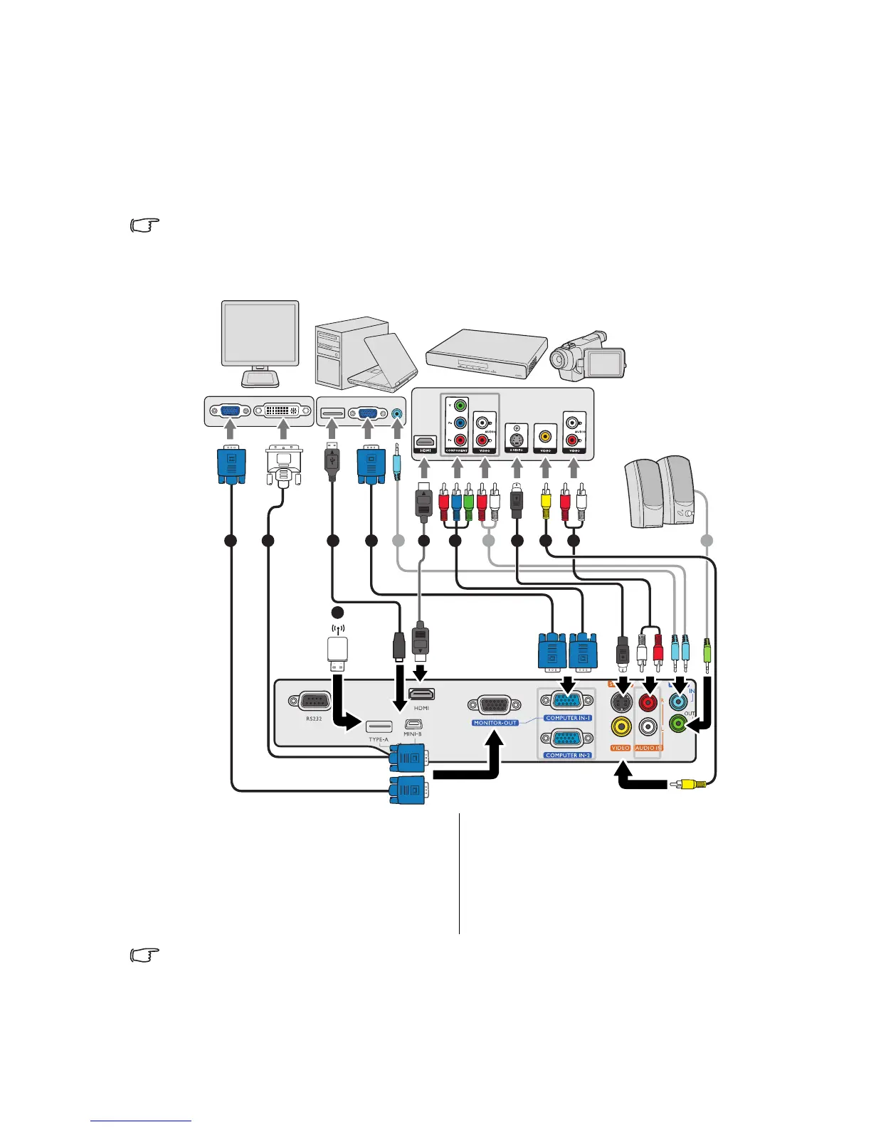 • In the connections shown below, some cables may not be included with the projector (see "Shipping