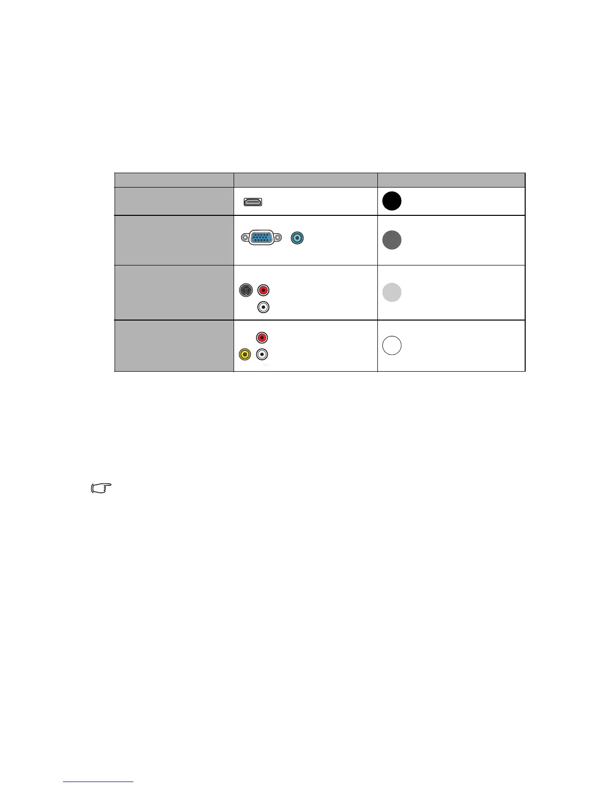 • The projector is only capable of playing mixed mono audio, even if a stereo audio input is connected. See