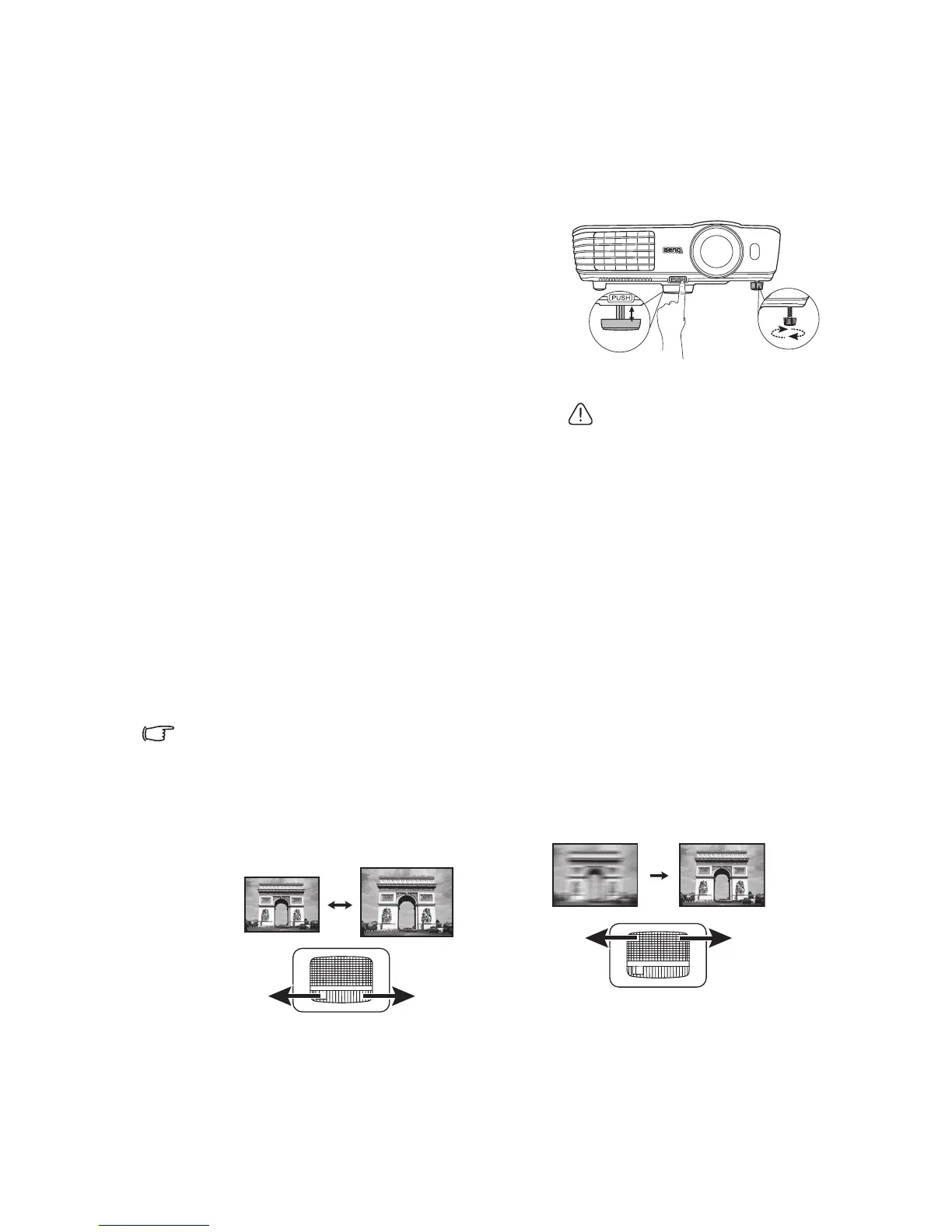 BenQ MW663 - Adjusting the Projected Image; Projection Angle and Auto Adjustment; Image Size and Clarity Tuning