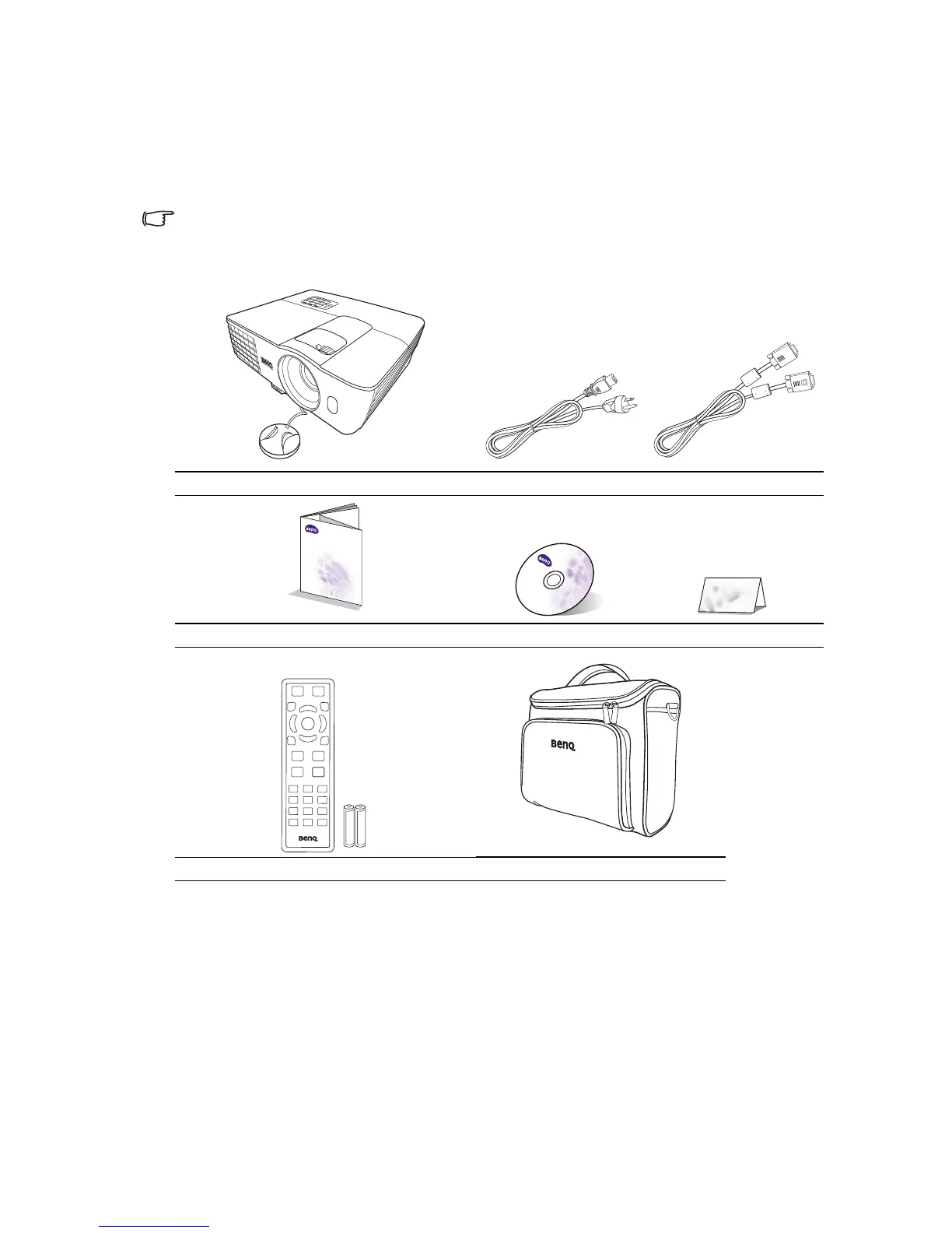 Carefully unpack and verify that you have all of the items shown below. If any of these items