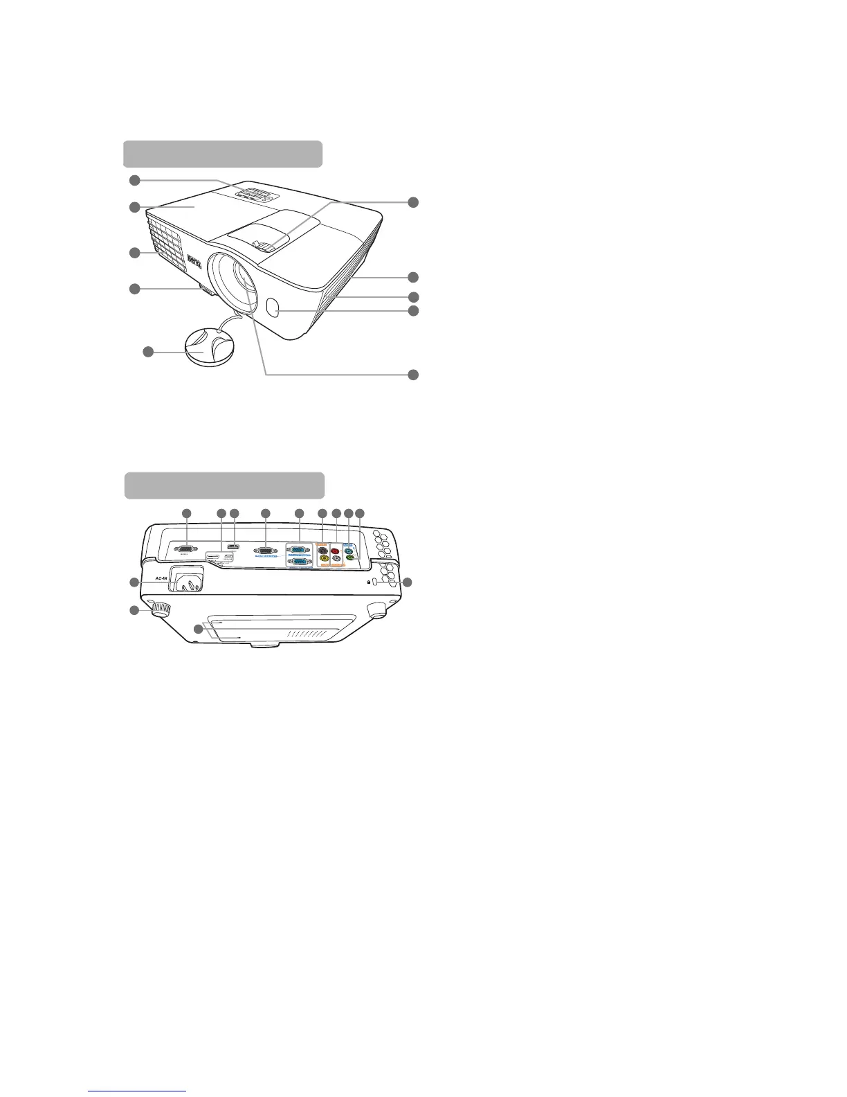 BenQ MW663 - Projector Exterior View; Front and Upper Side Components; Rear and Lower Side Components