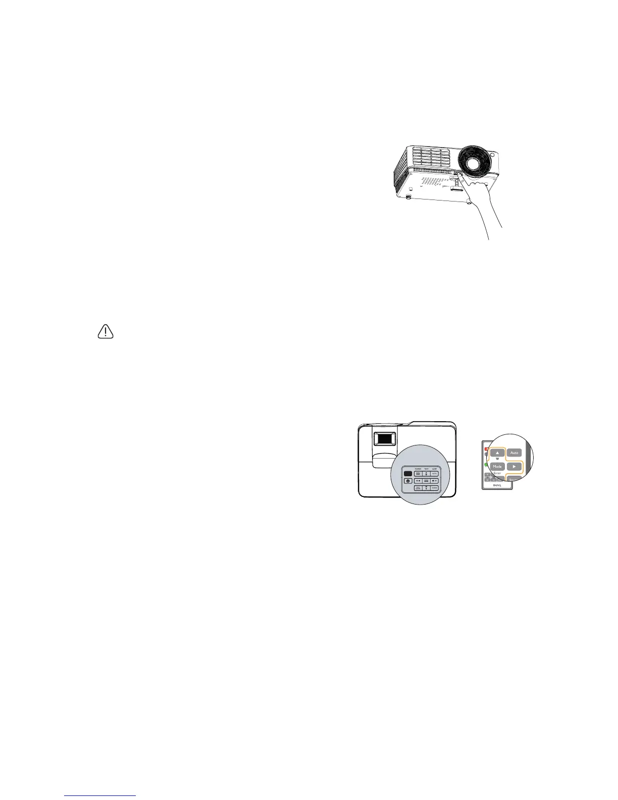 These adjusters change the image height and projection angle. To adjust the projector: