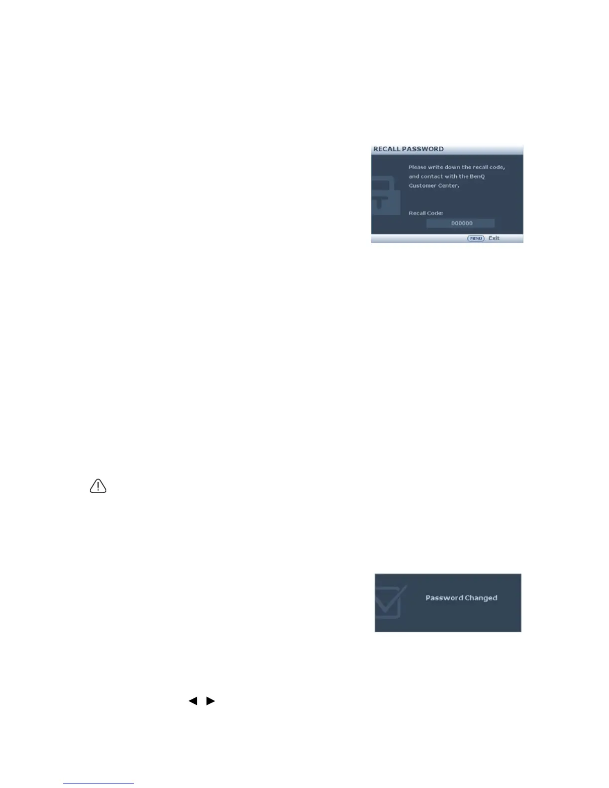 the password recall procedure. See "Entering the password recall procedure" on page 30