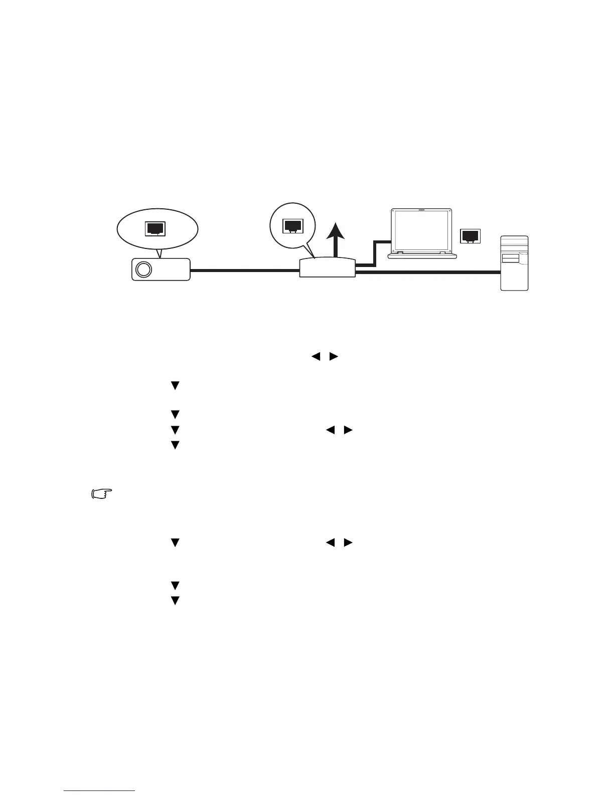 1. Take a RJ45 cable and connect one end to the LAN input jack of the projector and