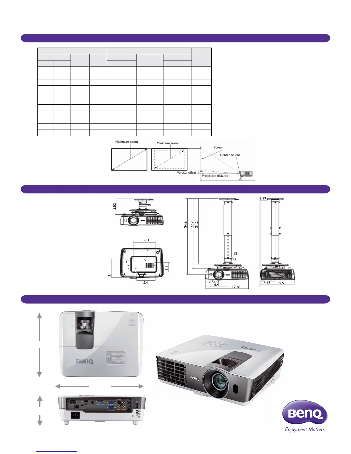 Screen Size Distance from screen (inch) Vertical