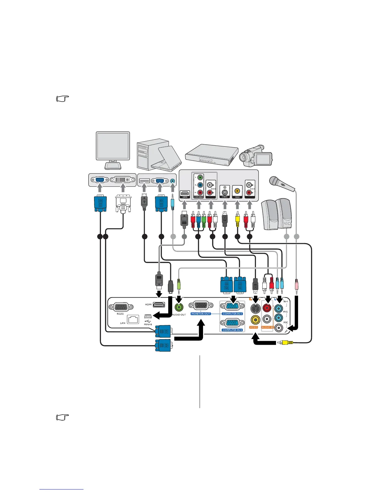• In the connections shown below, some cables may not be included with the projector (see "Shipping