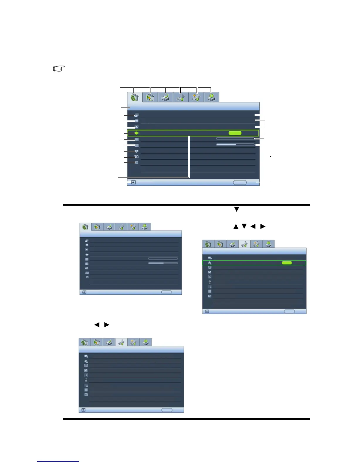 The projector is equipped with On-Screen Display (OSD) menus for making various