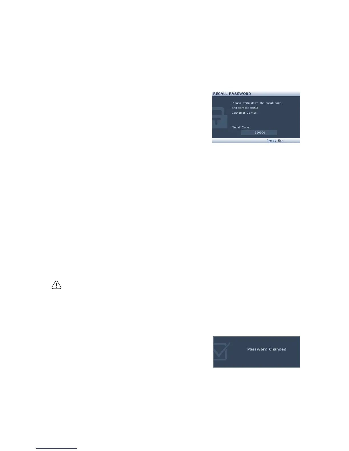 the password recall procedure. See "Entering the password recall procedure" on page 35