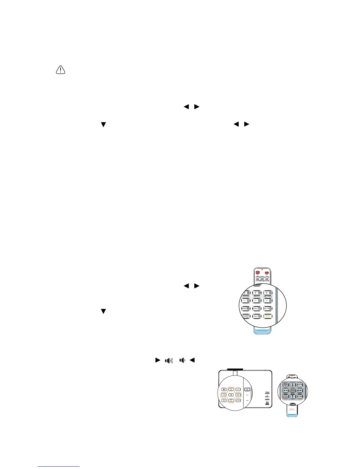 the remote control or on the projector, or: