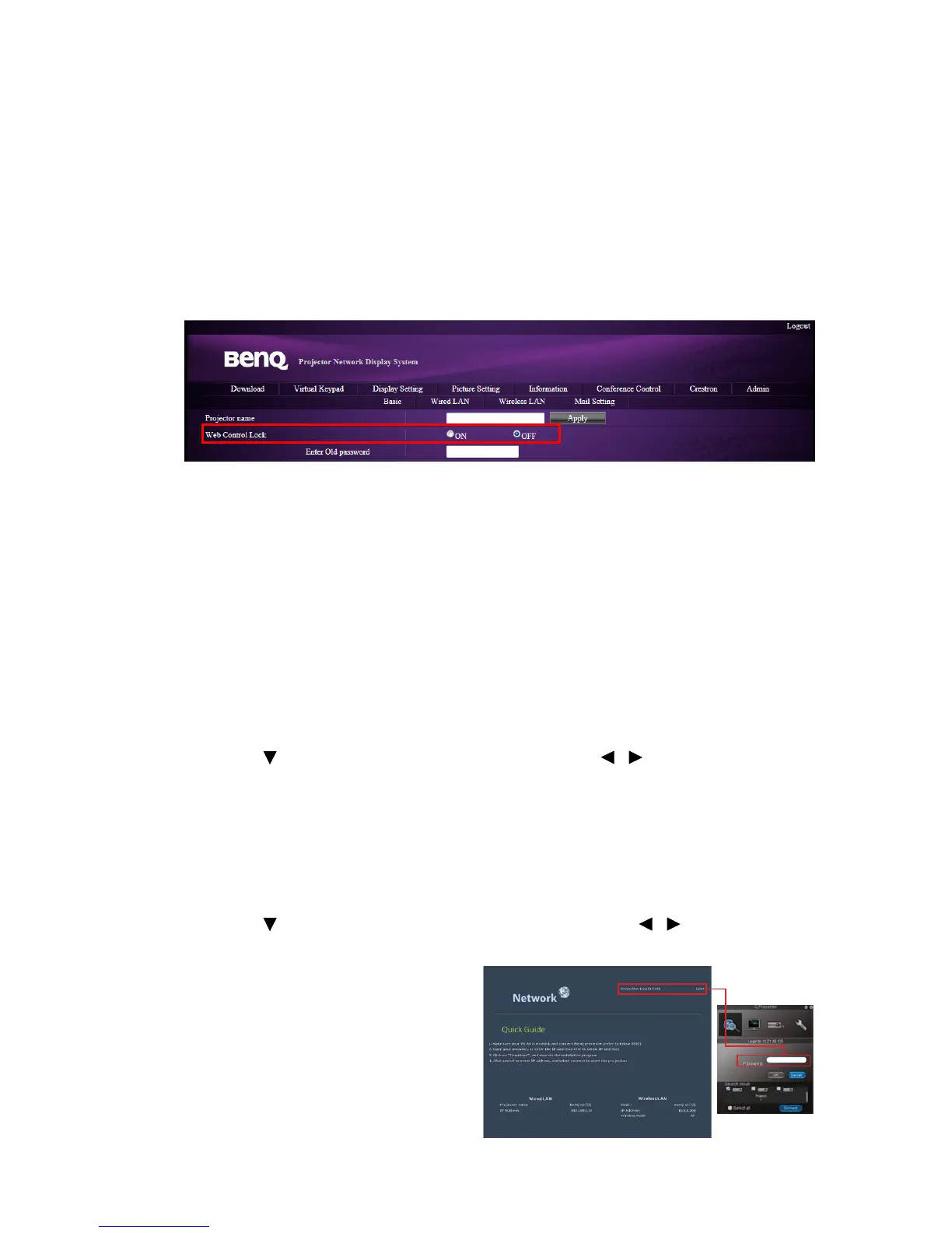 Press to highlight Web Control Lock and press / to select On or Off.