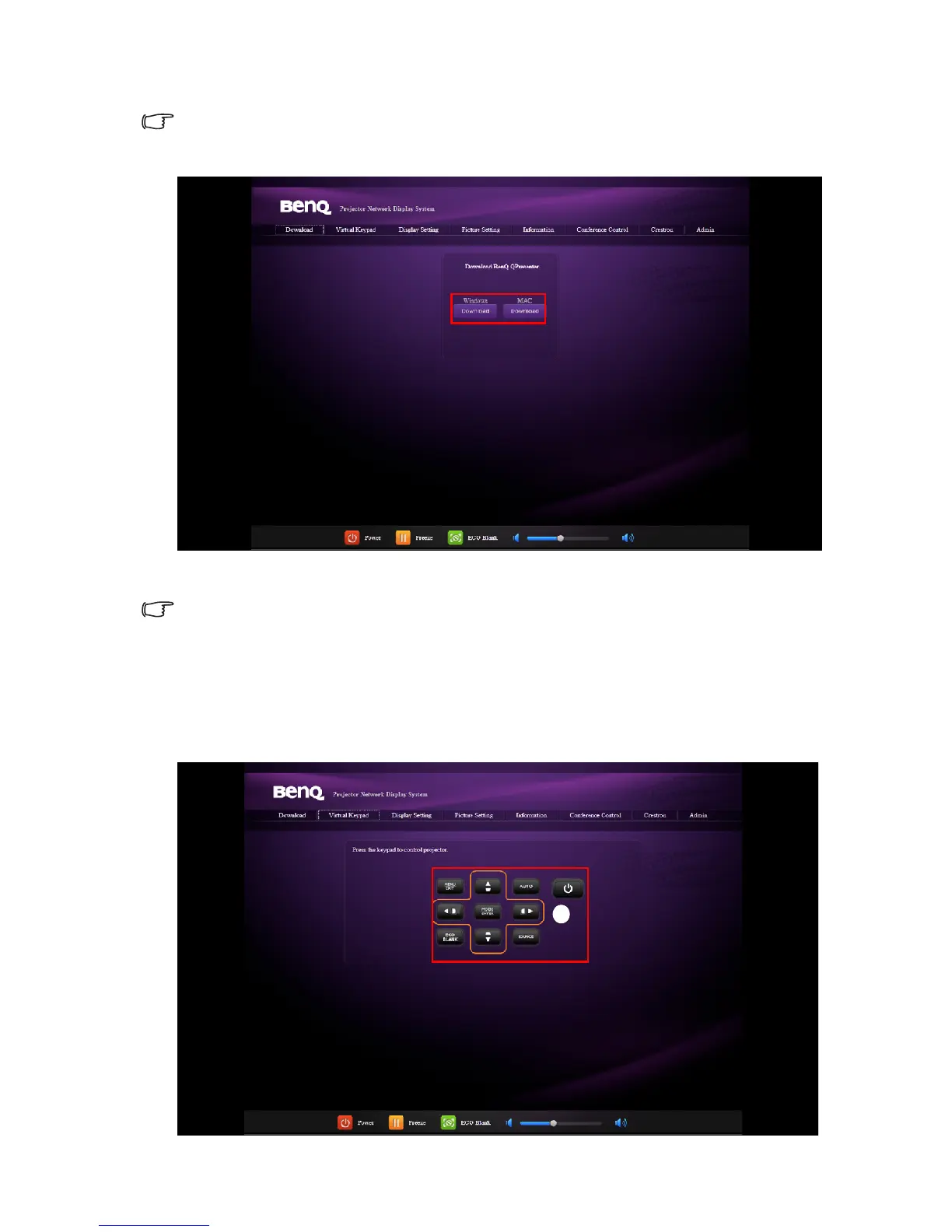 The Virtual Keypad page allows you to operate the projector as if you were using the