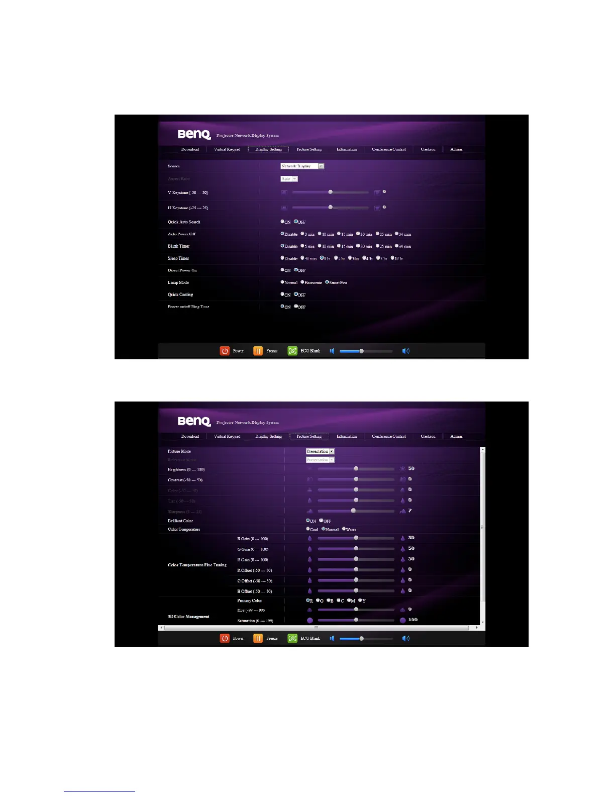 The Picture Setting page allows you to manage the projector as if you were using the