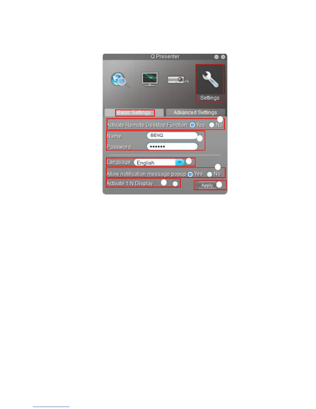 The Basic and Advanced Settings pages allow you to configure the Q Presenter.