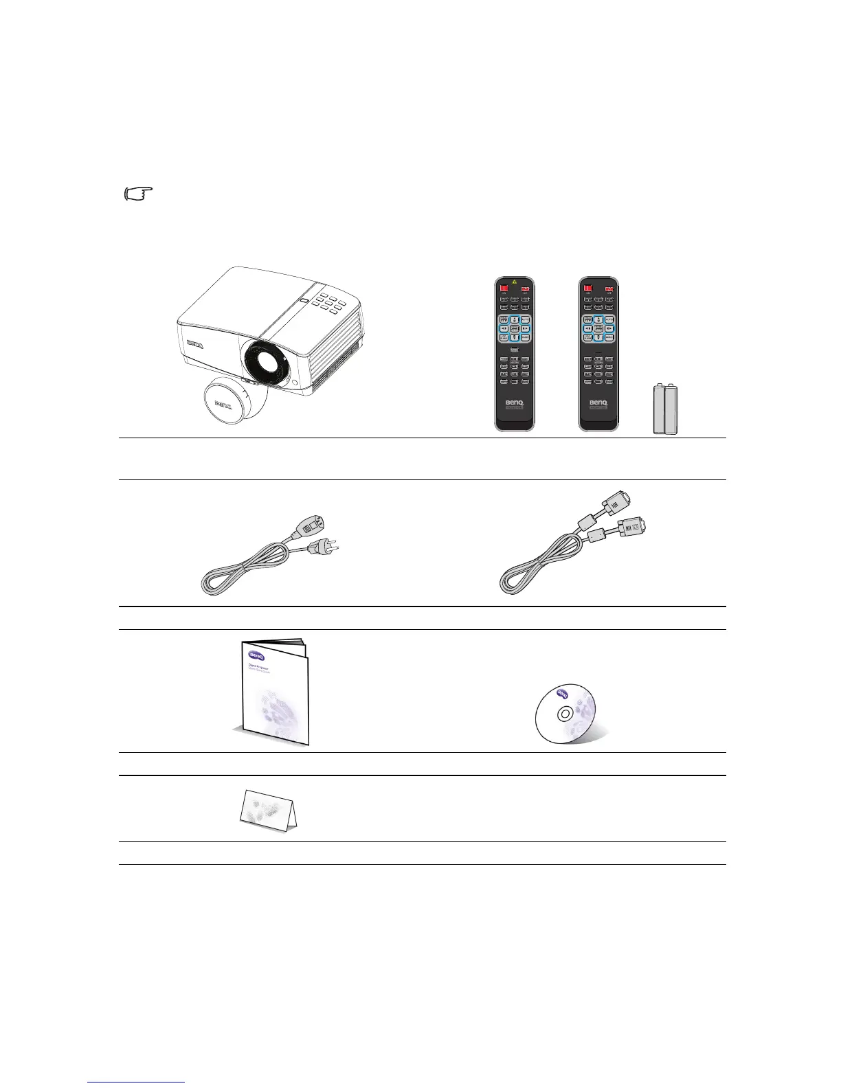 Carefully unpack and verify that you have all of the items shown below. If any of these items