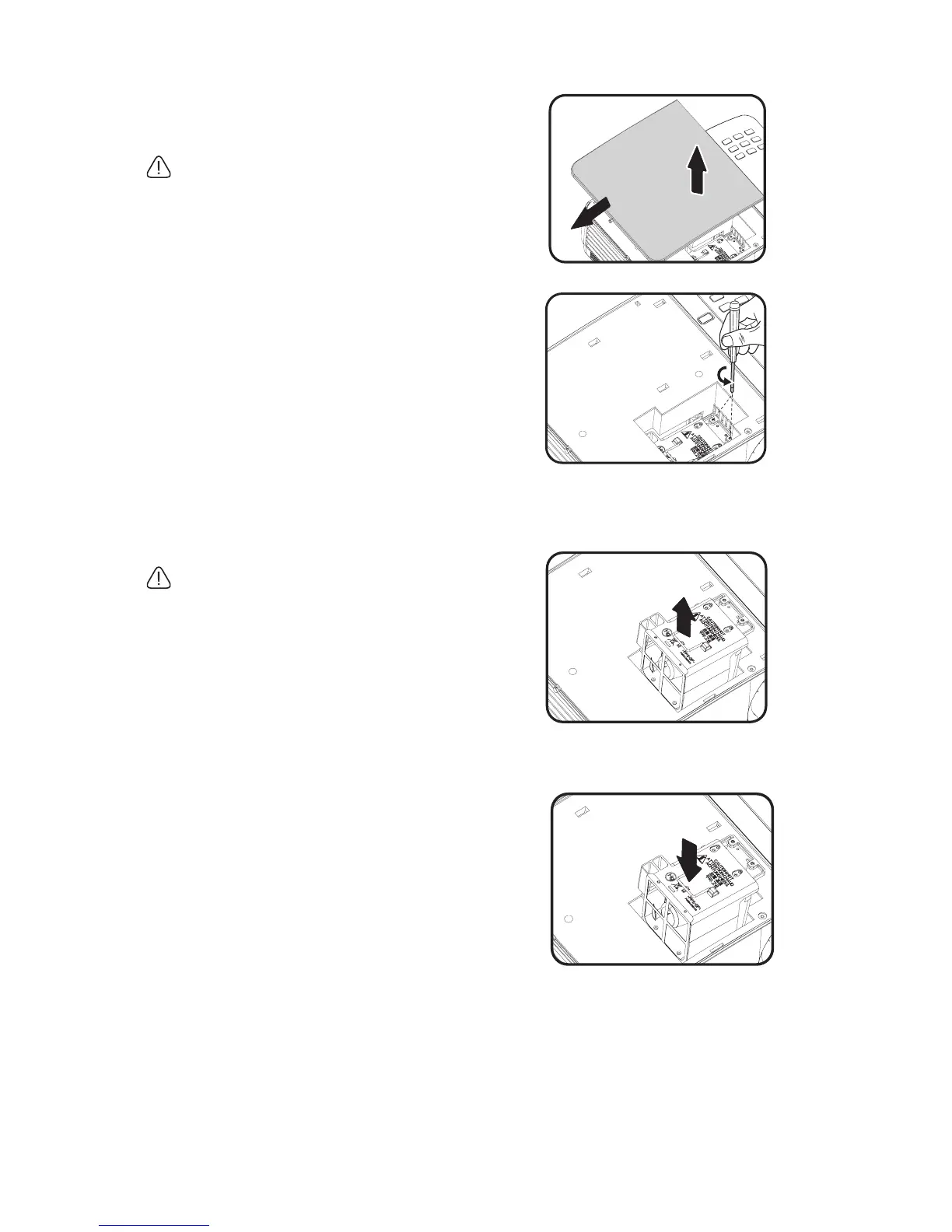 • Do not insert your hands into the projector