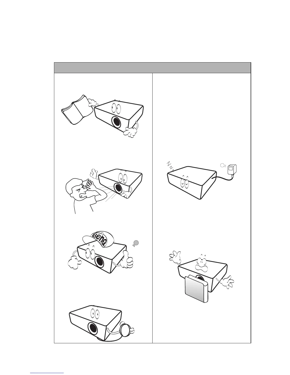 6. Do not block the projection lens with