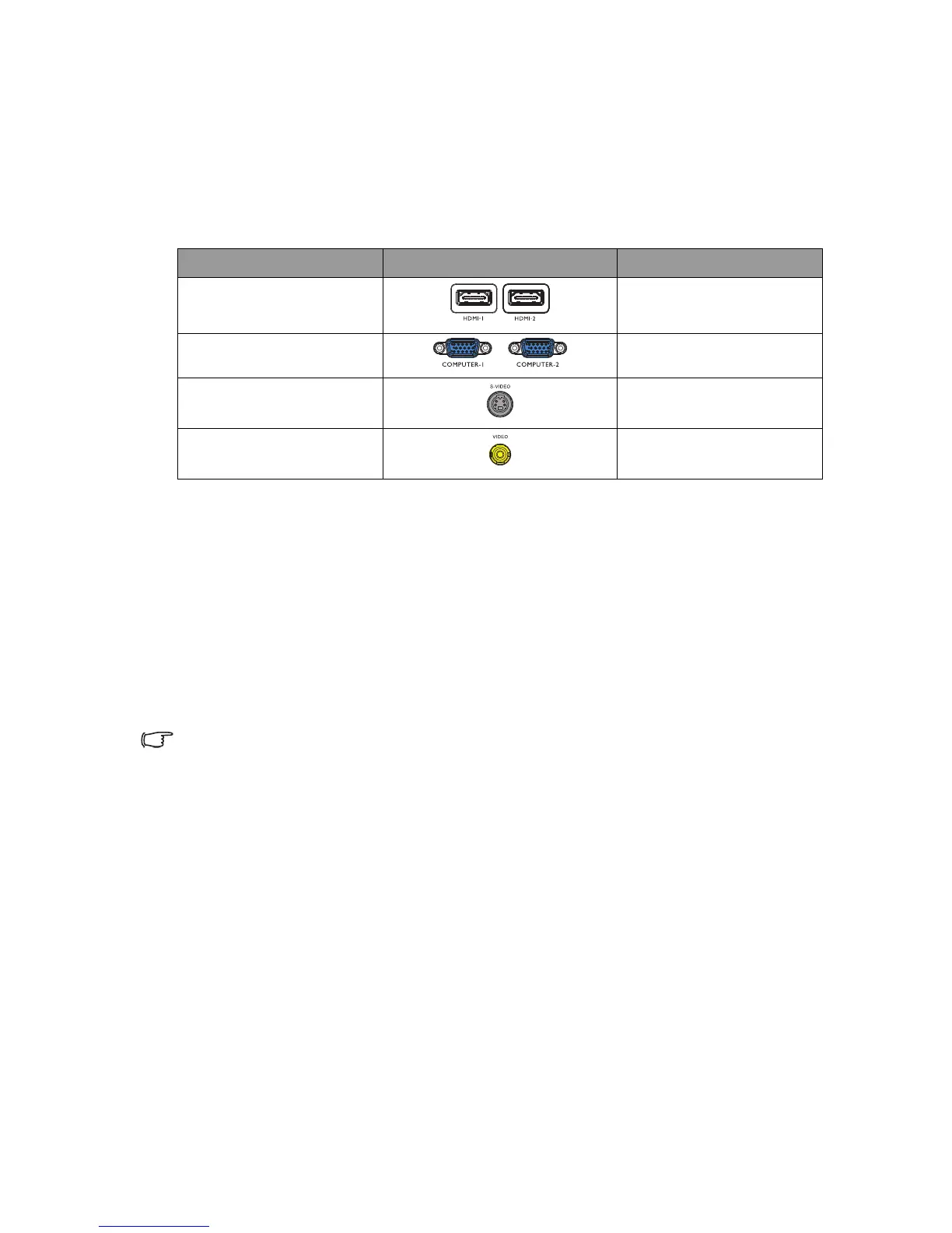 of matching terminals on both the projector and the video source device as