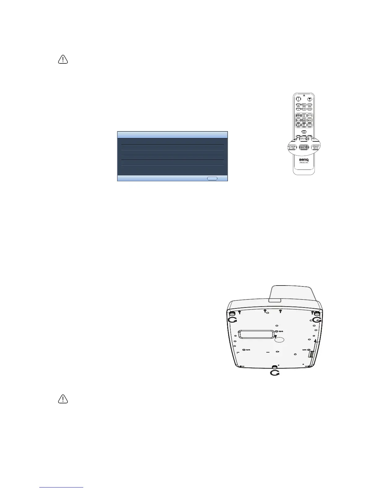 The projector is equipped with 3 adjuster feet. These adjusters change the