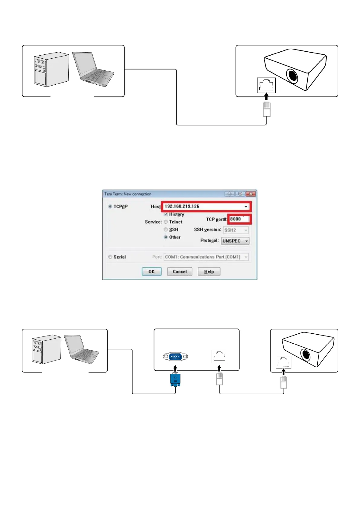 1. Find the Wired LAN IP address of the connected projector from the OSD menu and make sure the