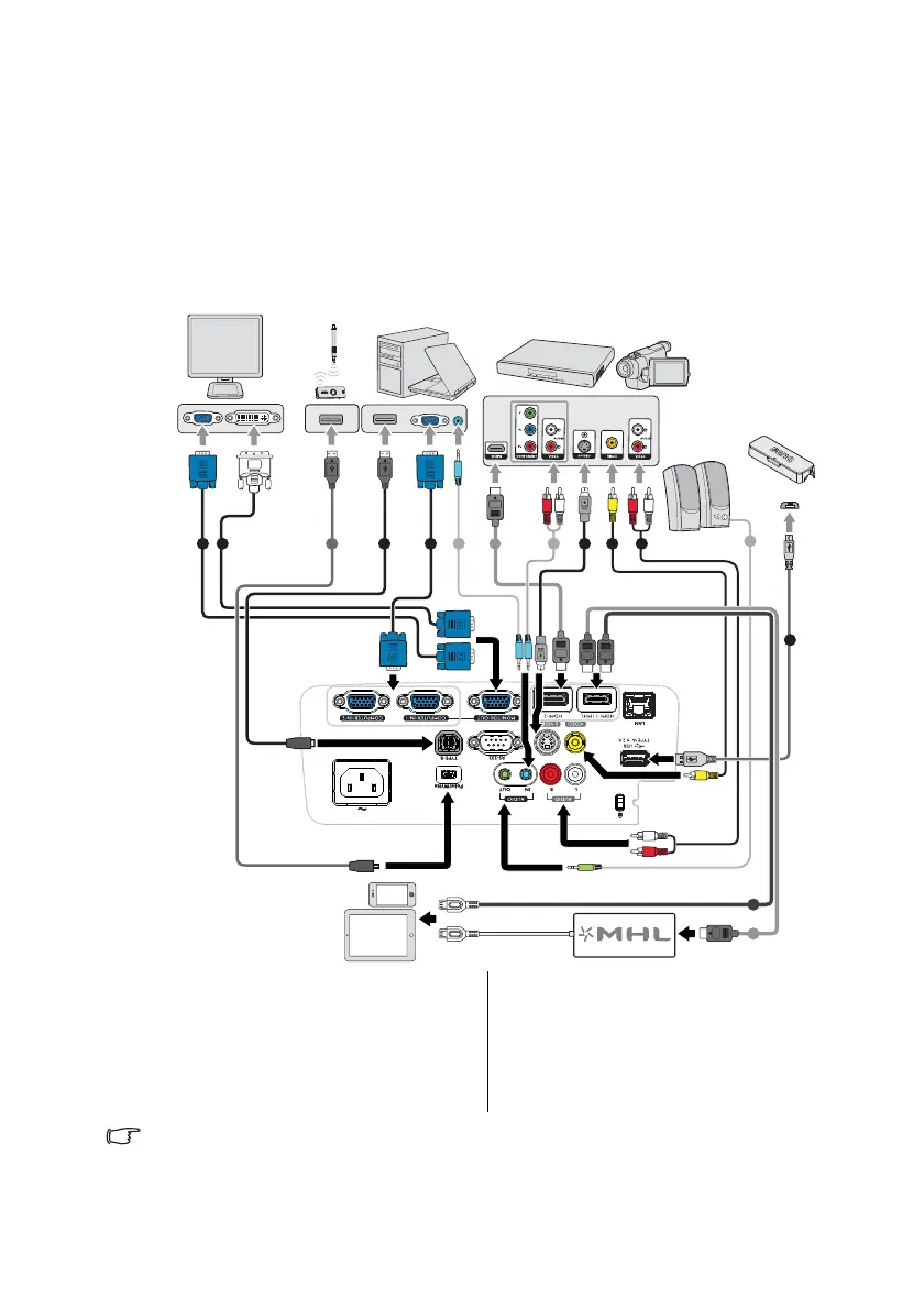 In the connections shown below, some cables may not be included with the projector (see