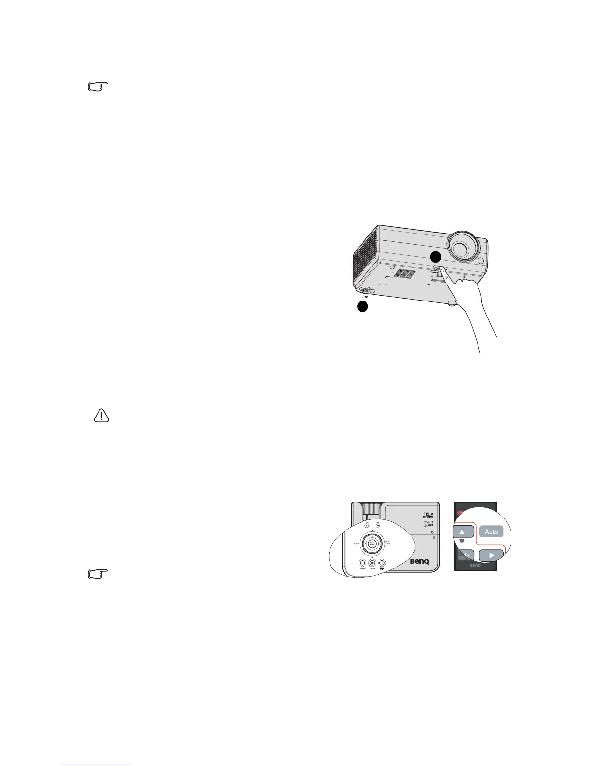 The projector is equipped with 1 quick-release adjuster foot and 1 rear adjuster foot. These