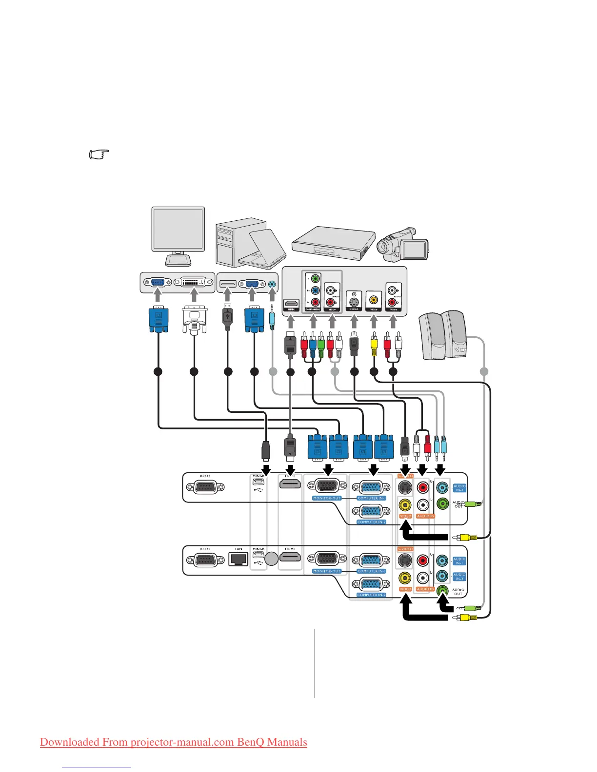 • In the connections shown below, some cables may not be included with the projector (see "Shipping