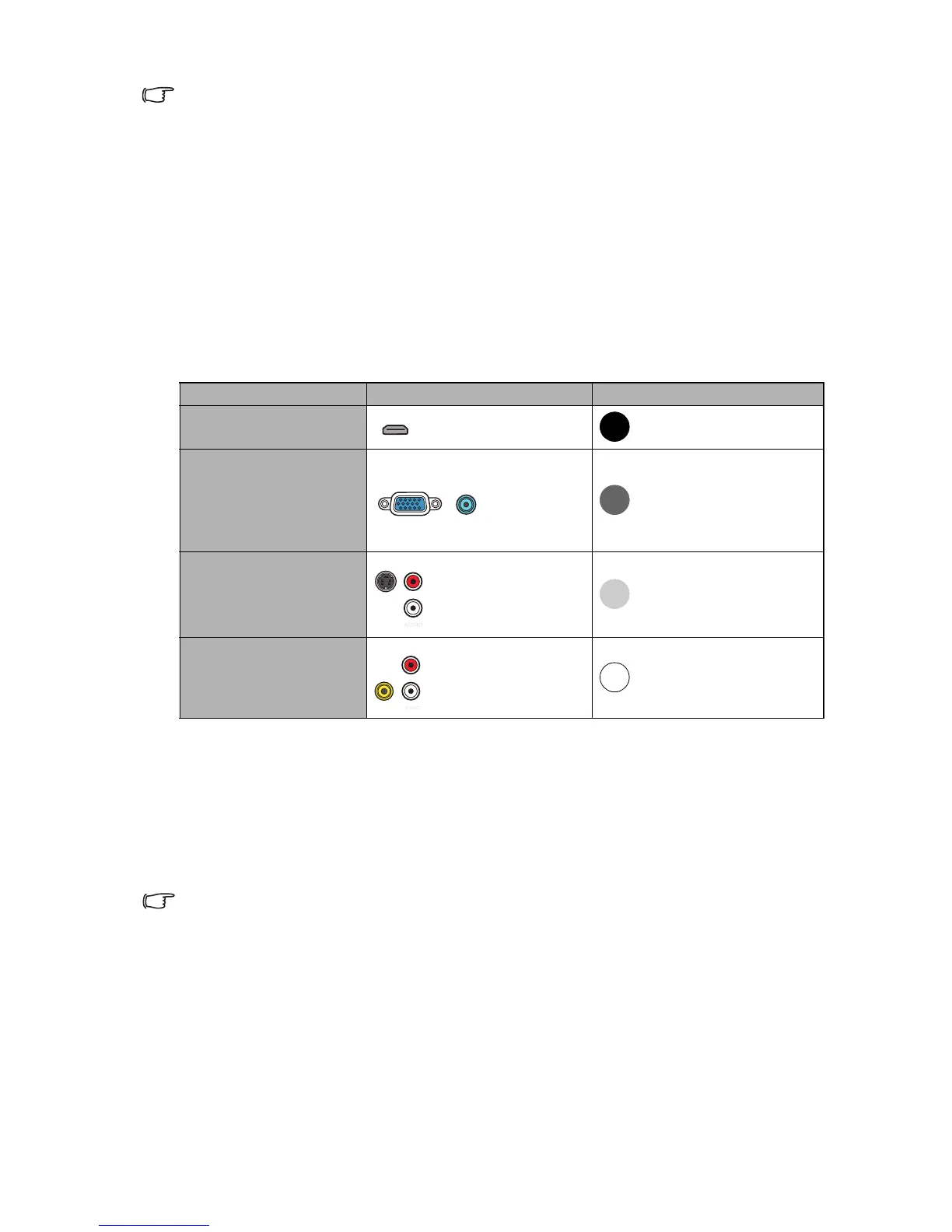 • The projector is only capable of playing mixed mono audio, even if a stereo audio input is connected. See