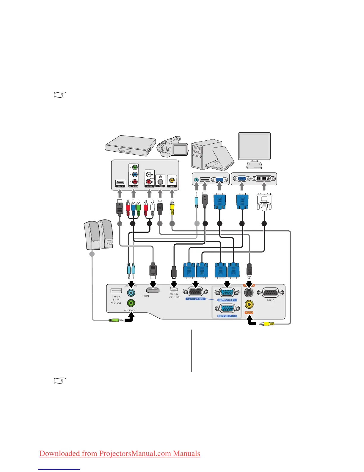 • In the connections shown below, some cables may not be included with the projector (see "Shipping