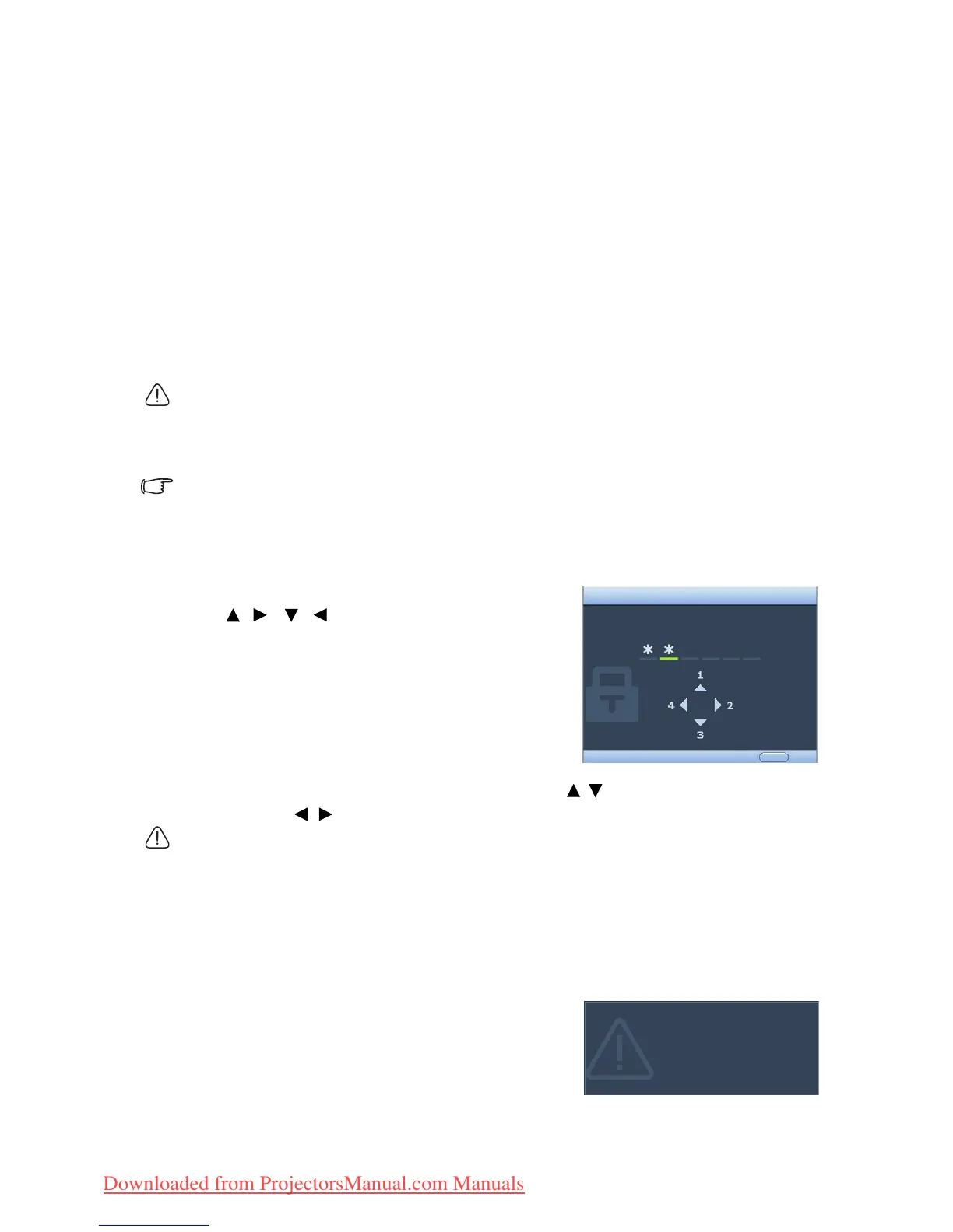 the projector. If you enter the wrong password, the