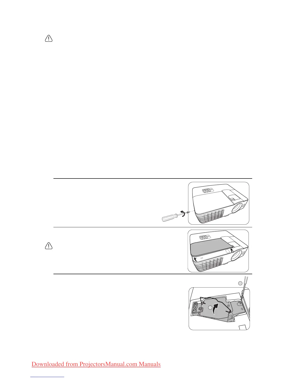 • To reduce the risk of severe burns, allow the projector to cool for at least 45 minutes before replacing the