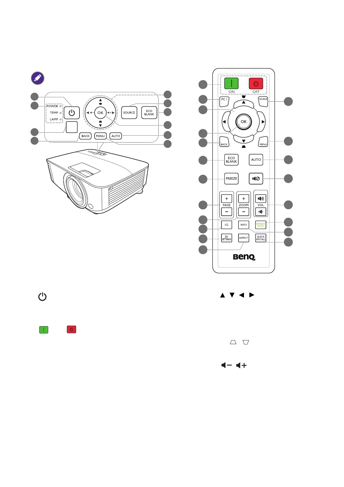 are available on the remote control or projector.