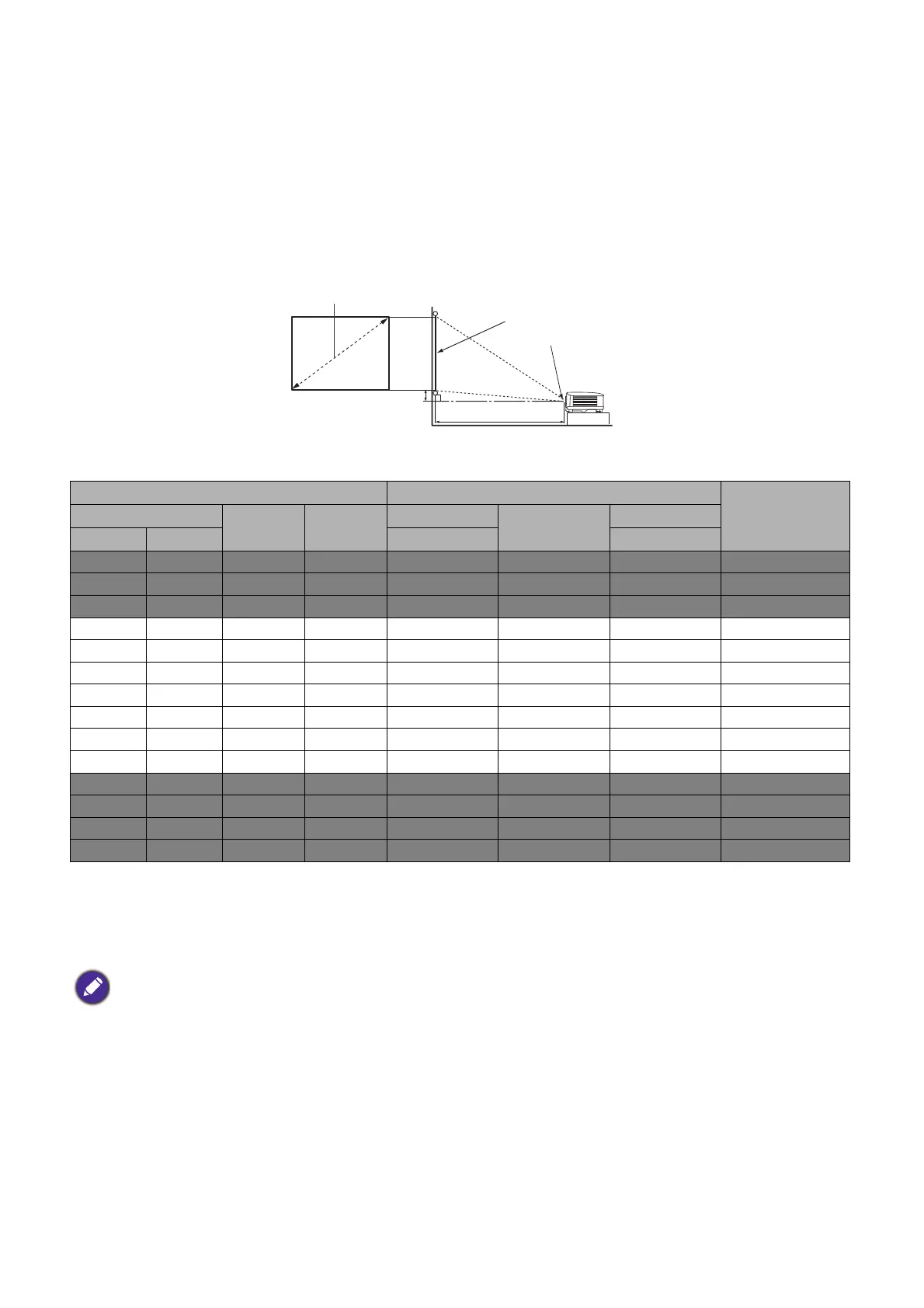 allowance for this projector's optical characteristics. This will help you determine the exact mounting position so
