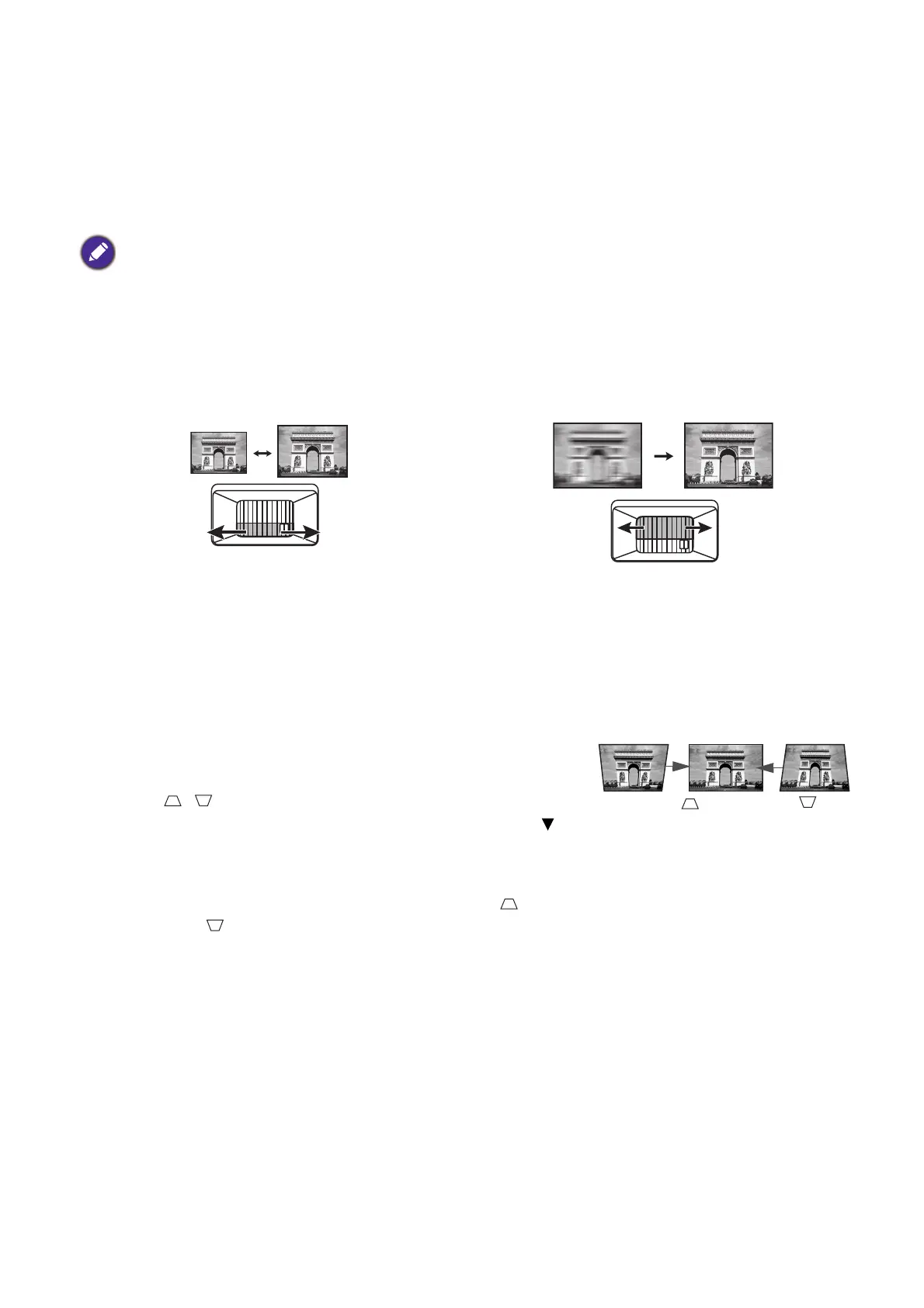 • Go to Advanced Menu - Display > Keystone and press OK.