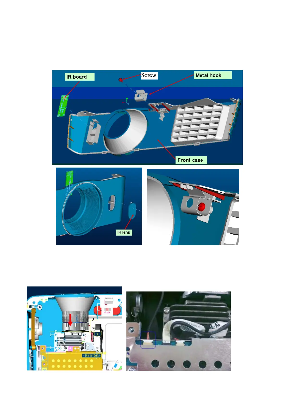 Step1. Assemble the lens IR and hook on the front case by screw. Next insert the IR board on the