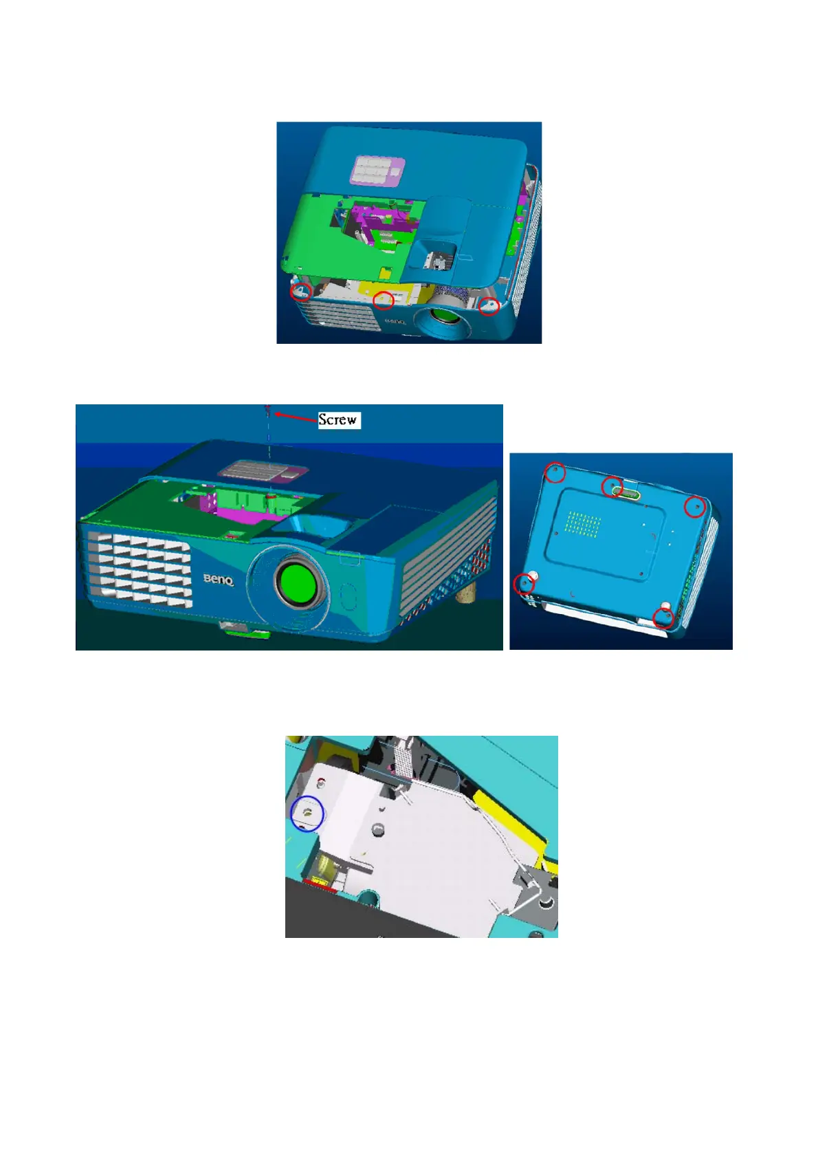 Step3. Assemble the upper case on the projector and screw on the lamp frame and 5 screws at the