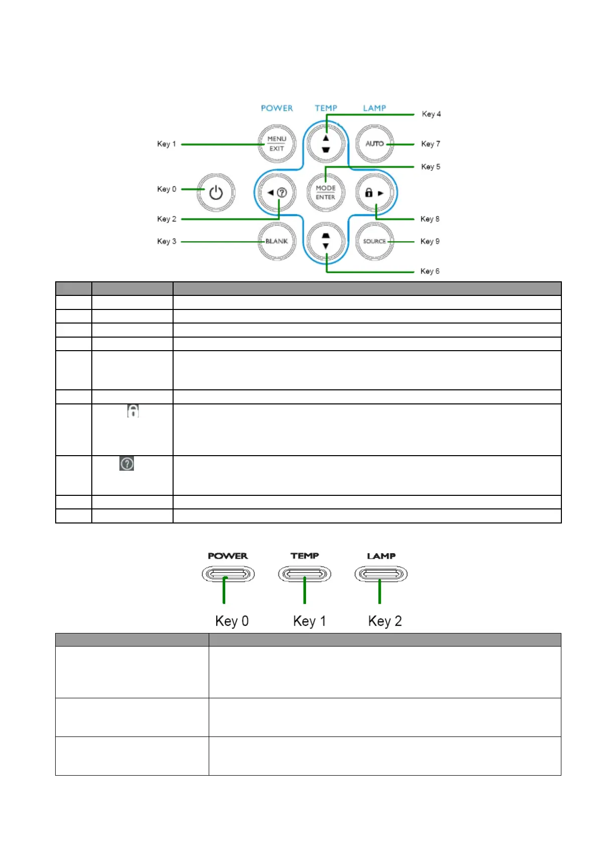 Key 0 Power Use this button to turn your Data Projector on and off (standby mode).