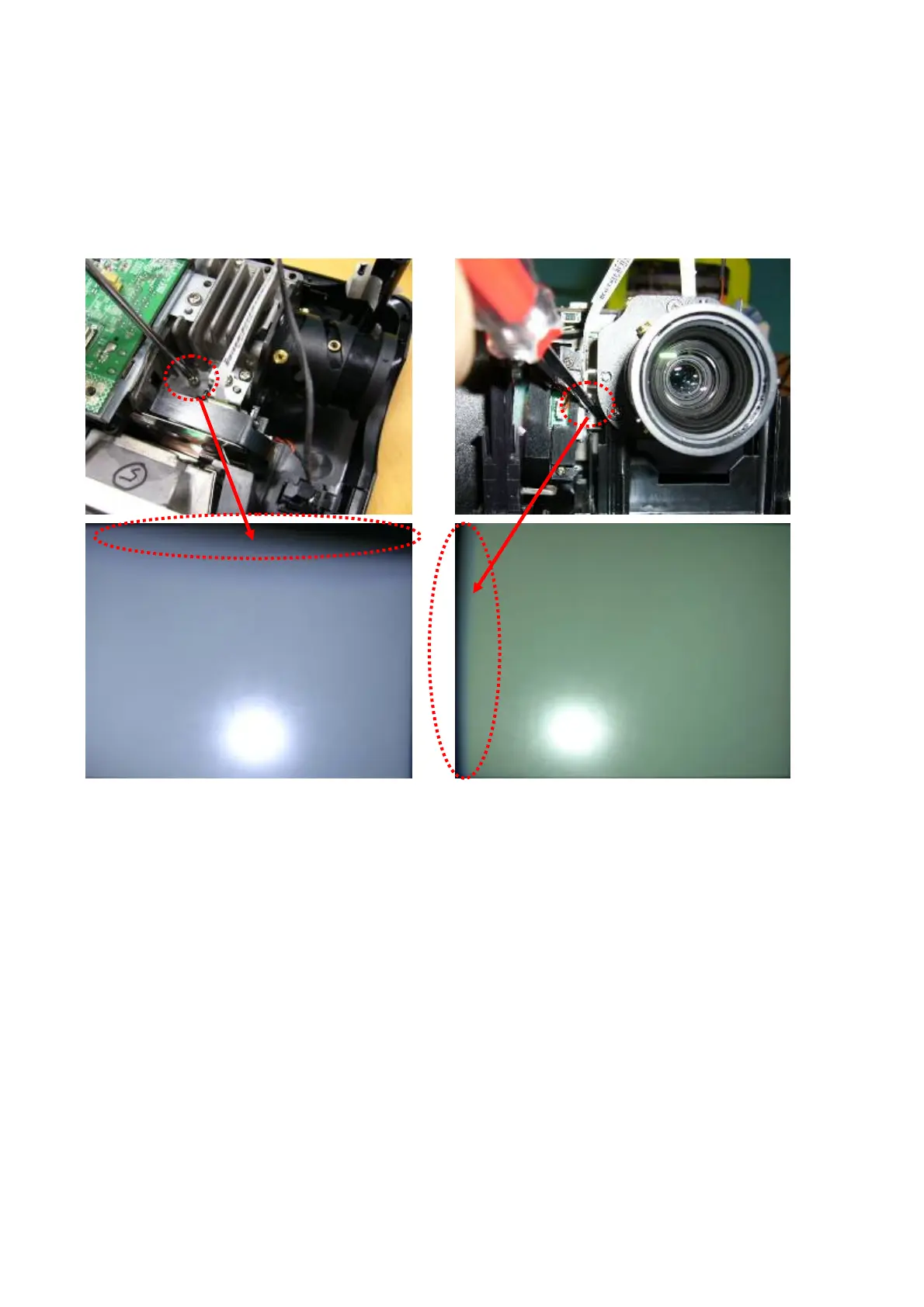 3. Alignment Criteria is to adjust these 2 screws until “No Dark Edges and “ No Shadows” can
