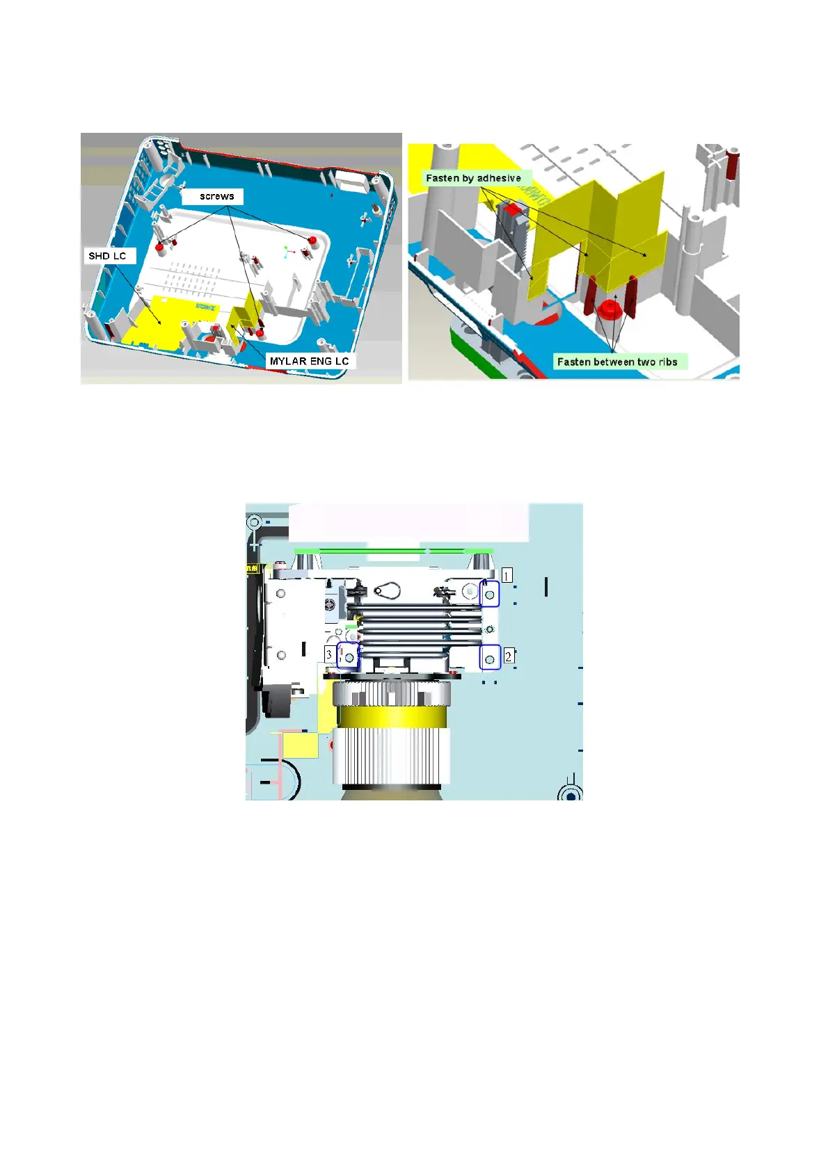 1.2 Insert the screws and assemble SHD LC MYLAR ENG LC on the lower case.