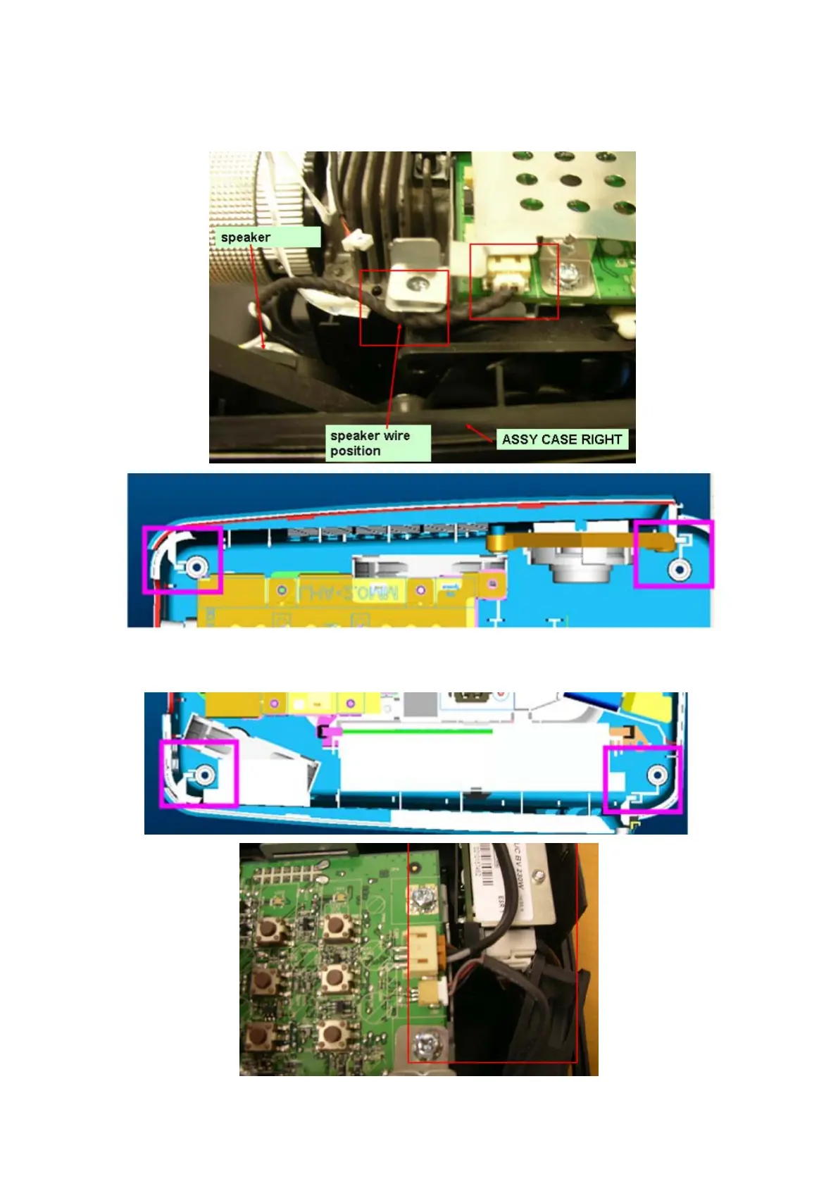 Step2. Plug in the speaker connector as figure shows and put the speaker wire as below. Then,