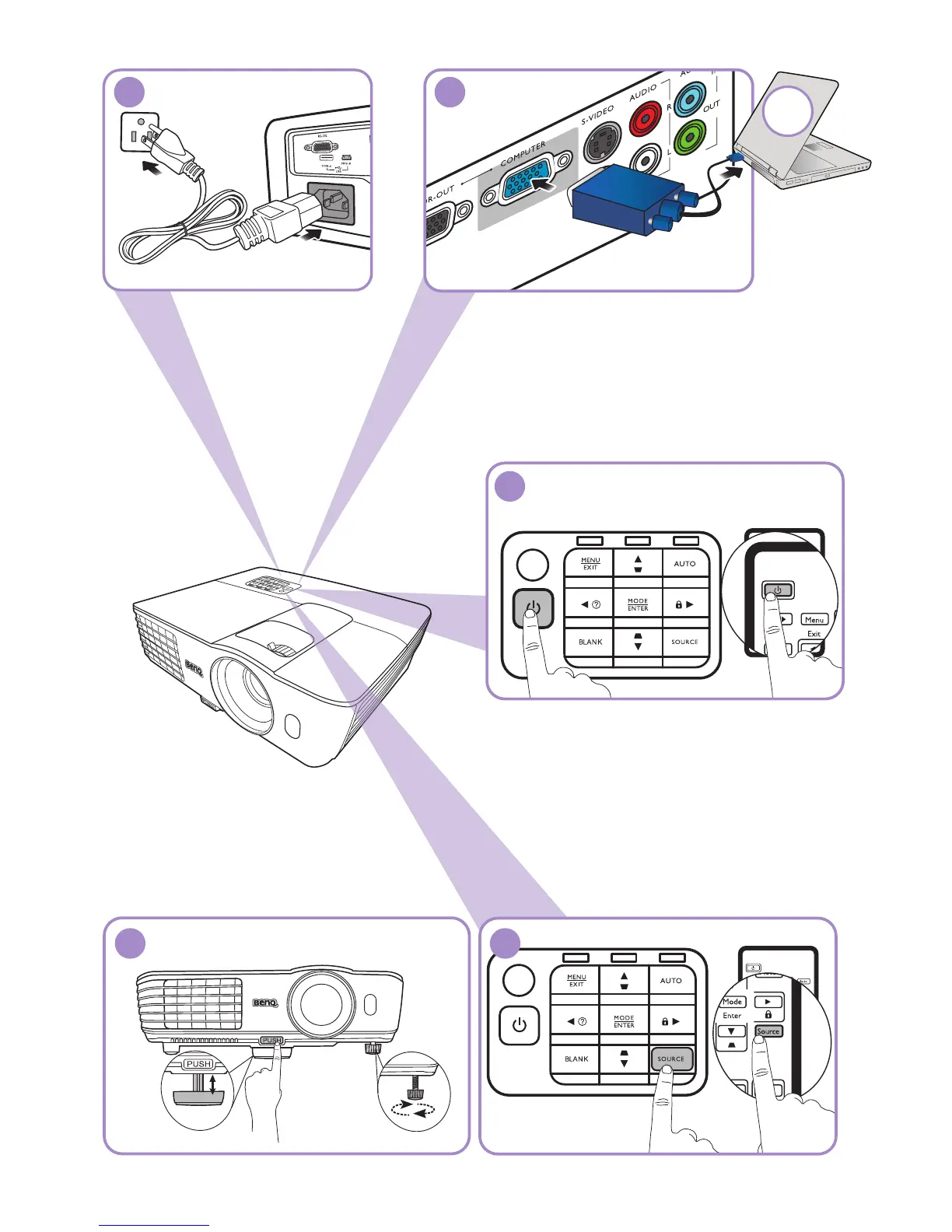 BenQ MX613ST - Projector Setup and Initial Operation; Connecting Power and Video Sources; Remote Control and Basic Functions